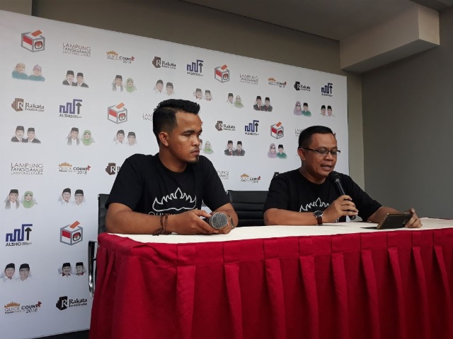 Ketua Rakata Institue, Eko Kuswanto, mengatakan Arinal-Nunik mengantongi 34,8 persen, sedangkan Ridho-Bachtiar 27,58 persen.