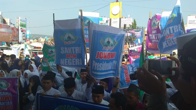 Dukungan majunya kembali Joko Widodo (Jokowi) pada pilpres 2019 terus mengalir di provinsi Lampung, kini dukungan Santri Lampung mendeklarasikan dukungan nya di Tugu Adipura, Jumat (4/8/2018).