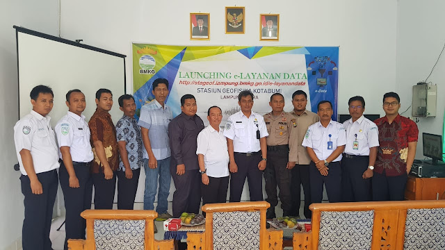 Dalam meningkatkan pelayanan masyarakat Stasiun Geofisika Kotabumi Lampung Utara mengadakan Launcing e-layanan Data yang di adakan di Kantor Badan Meterologi dan Klimatologi Giofisika (BMKG) Kotabumi Lampung Utara,Senin 15/10)