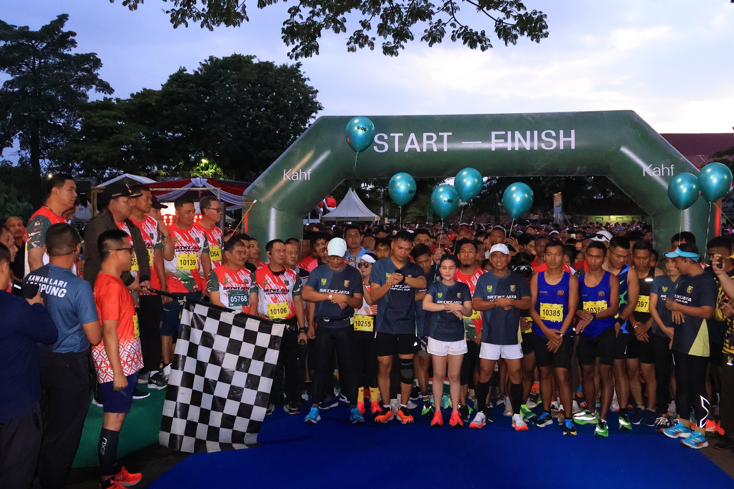 Komandan Korem 043/Gatam Brigjen TNI Iwan Ma’ruf Zainudin, S.E., Gubernur Lampung Ir. H. Arinal Djunaidi beserta forkopimda Provinsi Lampung, melepas peserta lomba lari 5 K dan 10 K Sriwijaya Lampung Run, bertempat di Lapangan Saburai Jl. Sriwijaya Kecamatan Enggal Bandar Lampung. Minggu (28/1/2024).