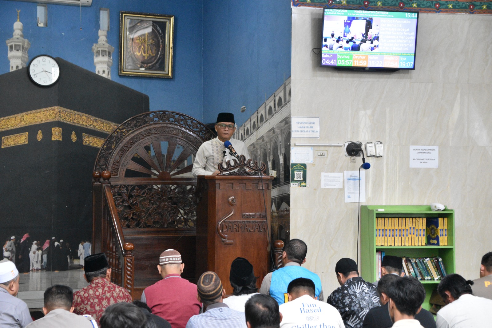 Qomaru Zaman juga menyempatkan mengisi taklim Ashar di Masjid Baitul Ilmi IIB Darmajaya sebelum bertemu dengan mahasiswa dalam bazar karnaval IT. Dalam pesan taklimnya kepada para jemaah agar selalu memberikan manfaat.