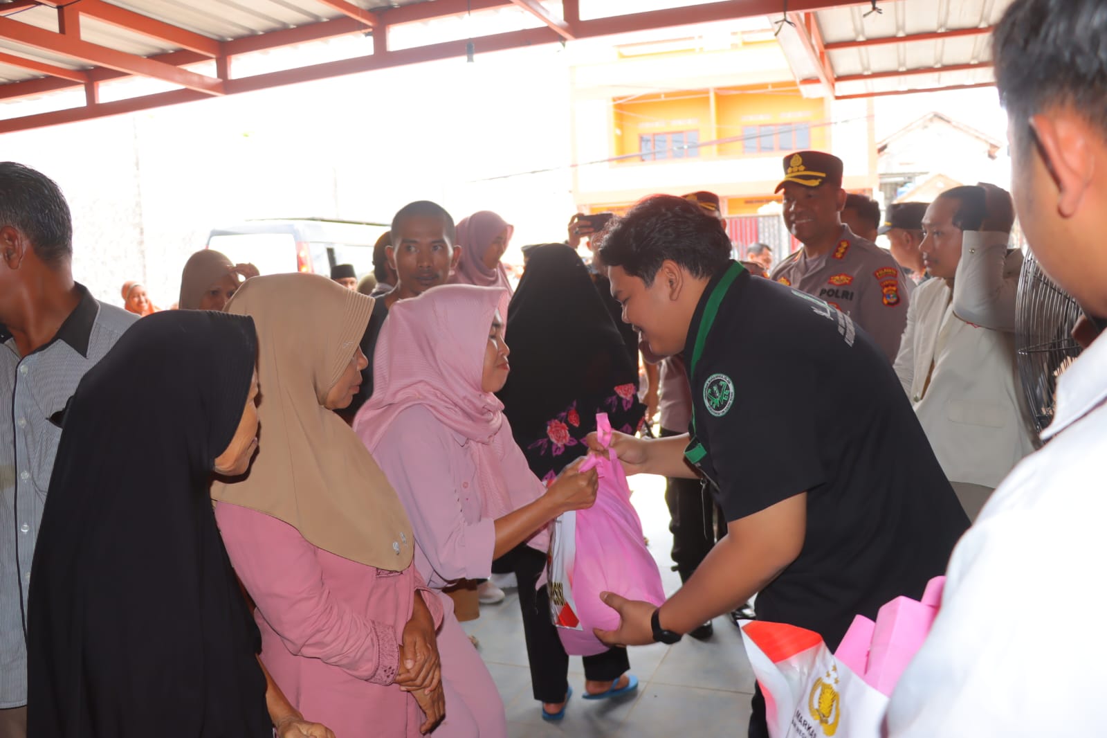 Ratusan paket sembako ini berisi beras, minyak goreng, gula pasir dan mie instant.