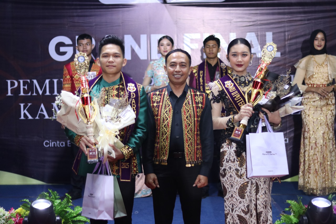 David Saputra dan Marcheline Aurely, Mahasiswa Prodi Sistem Komputer dan Mahasiswi Prodi Bisnis Digital Institut Informatika dan Bisnis (IIB) Darmajaya dinobatkan sebagai Putera dan Puteri Kampus tahun 2025.