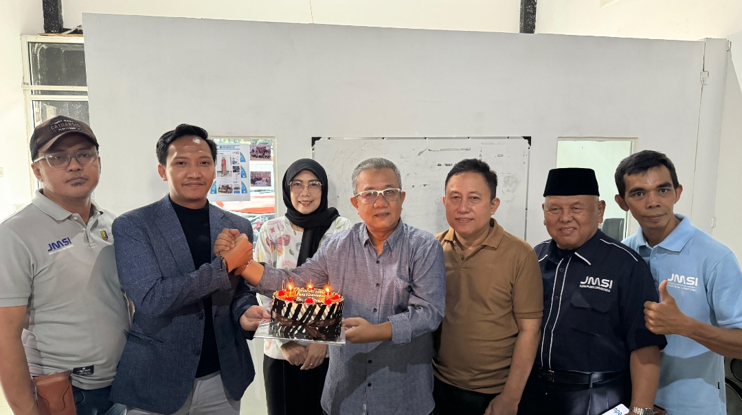 PT. Bakauheni-Terbanggi Besar (BTB) melalui Operator Hakaston Bakter berikan kejutan kepada Jaringan Media Siber Indonesia (JMSI) Provinsi Lampung di hari jadi Ke-5 yang bertepatan dengan Hari Pers Nasional (HPN) di kantor JMSI Lampung, Jl. Sultan Agung, Sepang Jaya, Kecamatan Kedaton, Kota Bandar Lampung, Minggu (09/02/2025).