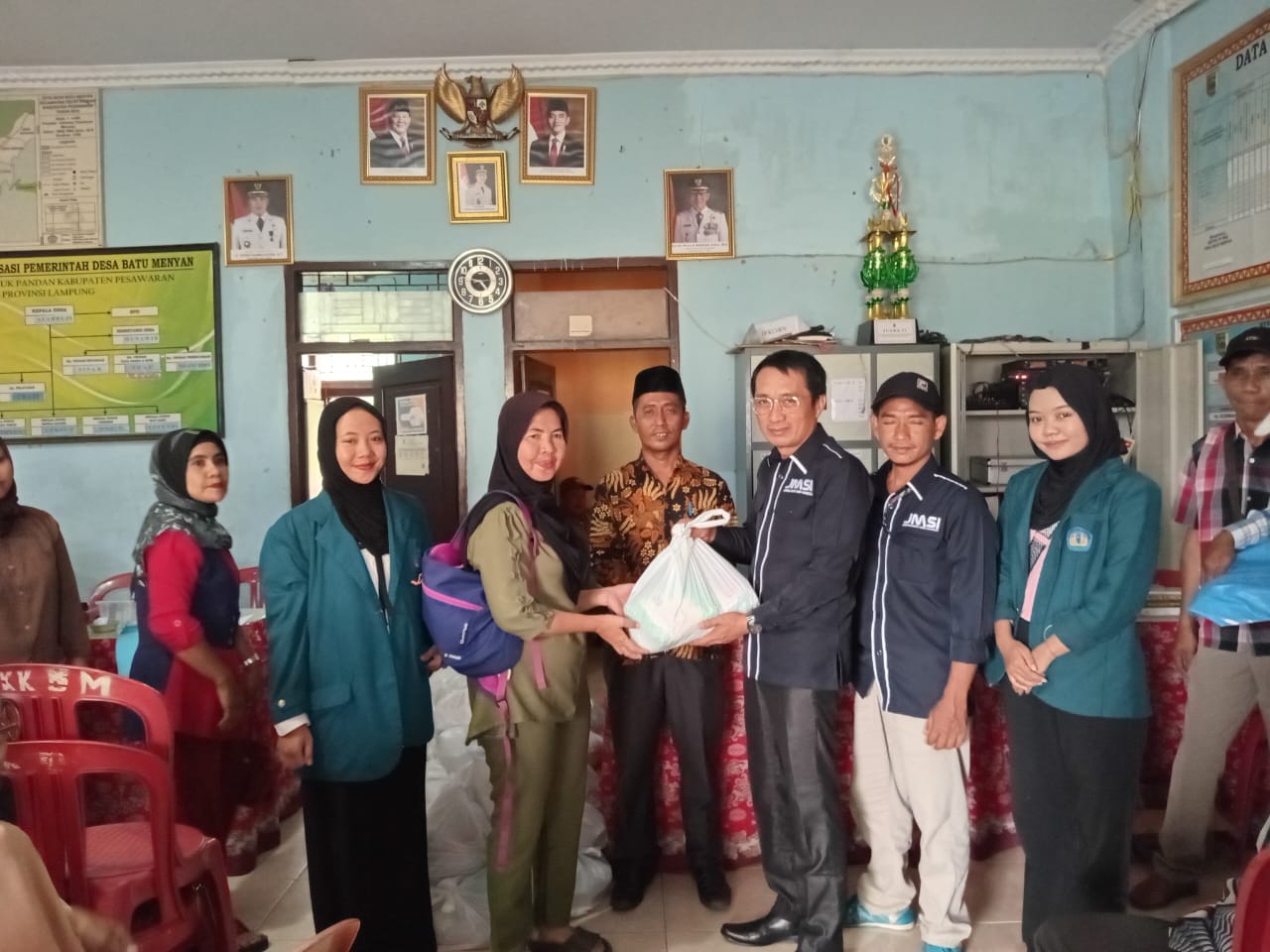 Penyerahan bantuan melalui “Kegiatan Bakti Sosial Kita Peduli” dengan Tema ‘Bantu Sesama Untuk Pesawaran Bermartabat’ ini, dilaksanakan di Balai Desa Batu Menyan dengan dihadiri Kepala Desa Syahruji, Sekretaris Desa Munawir dan seluruh aparatur desa hingga ketua RT.