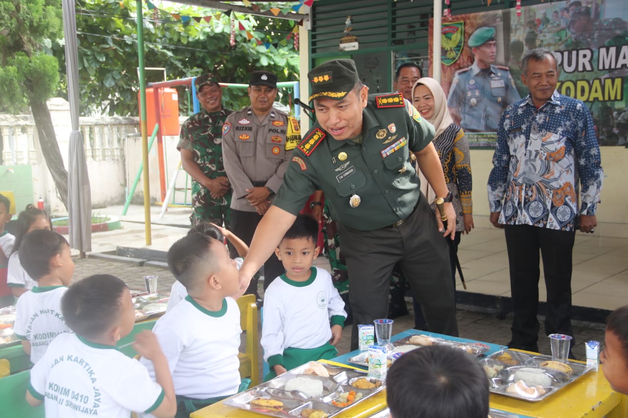 Pada hari Jumat, 14 Februari 2025 pukul 09.00 WIB, Kodam II/Sriwijaya melalui jajaran Korem 043/Gatam dan Kodim 0410/Kota Bandar Lampung melaksanakan monitoring kegiatan **“Dapur Masuk Sekolah”** di TK Kartika II-28, Yayasan Kartika Jaya, Jl. Nusa Indah No. 2, Sumur Batu, Kecamatan Teluk Betung Utara, Kota Bandar Lampung. Kegiatan ini dihadiri oleh sekitar 80 orang, termasuk perwakilan TNI-AD, pemerintah setempat, serta dewan guru dan siswa TK Kartika II-28.