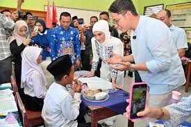 “Memastikan siswa mendapatkan makanan gizi yang seimbang sehingga diharapkan akan berpengaruh terhadap perkembangan otak. Ahamdulillah anak-anak hari ini sangat antusias mendapatkan makan siang gratis,” ujarnya.