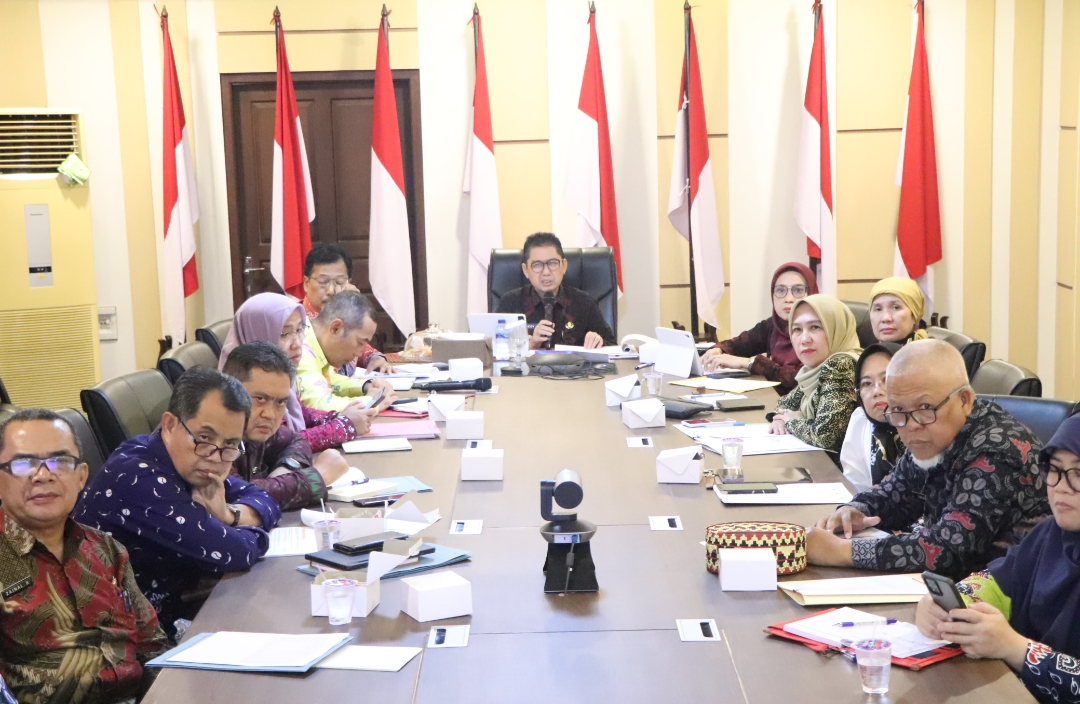 Pj. Sekretaris Daerah Provinsi Lampung, Fredy mengikuti Rapat Tindak Lanjut Hasil Rakortas Bidang Pangan Provinsi Lampung secara virtual bertempat di Ruang Rapat Sakai Sambayan, Kamis (06/02/2025)