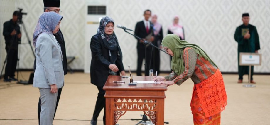 Rektor Universitas Lampung (Unila) Prof. Dr. Ir. Lusmeilia Afriani, D.E.A., IPM., ASEAN Eng., melantik pejabat tahap tiga di lingkungan Unila pada Rabu, 12 Februari 2025, di ruang sidang lantai empat rektorat.