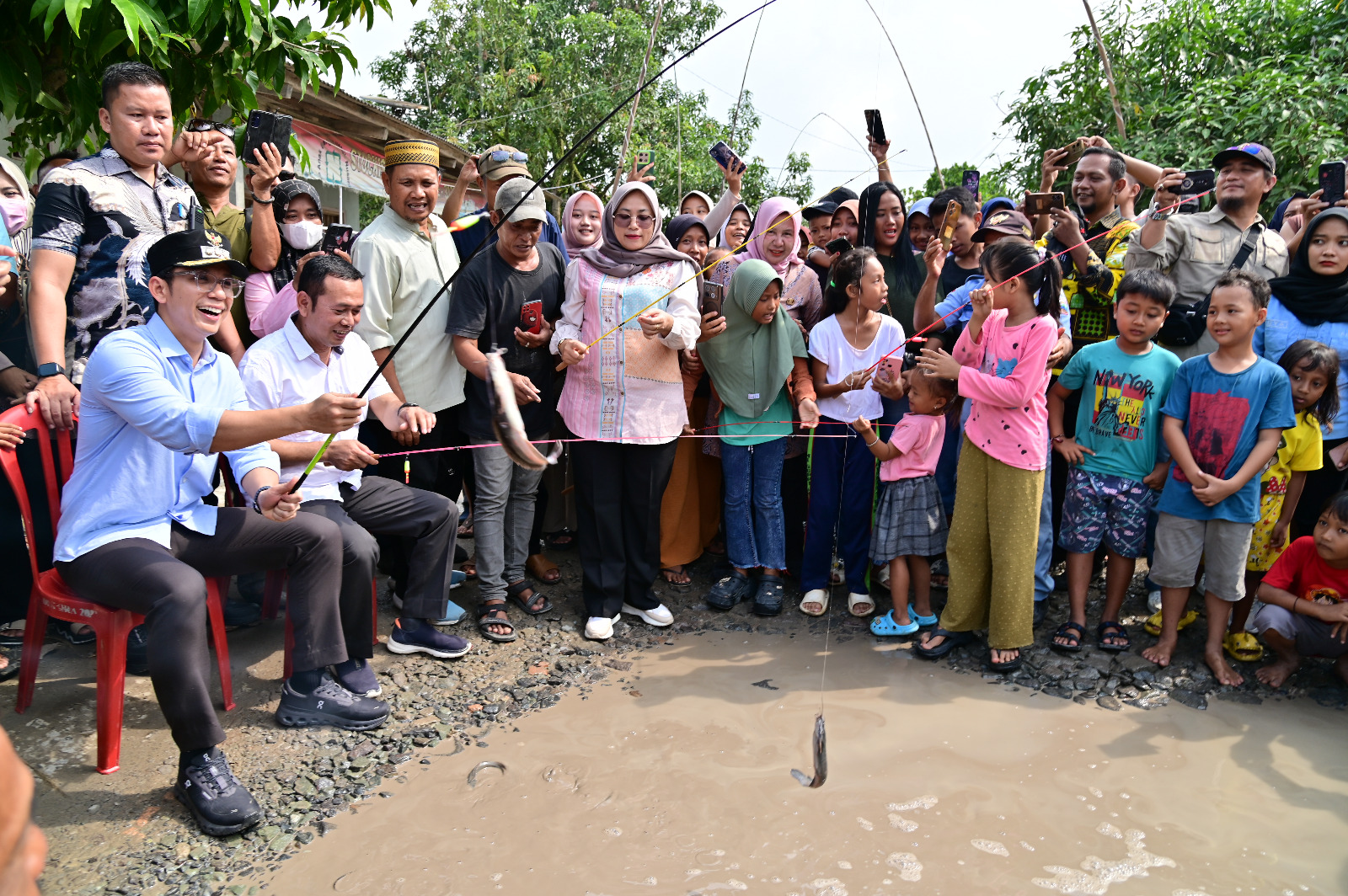 Merespons kritik tersebut, Bupati Egi datang bukan hanya untuk meninjau, tetapi juga ikut “nyemplung” bareng warga. Bupati juga turut memancing lele, bakar lele, hingga makan bareng bersama warga di tepi jalan. Tak pelak, suasana menjadi cair, penuh tawa, dan yang terpenting, warga merasa didengar.