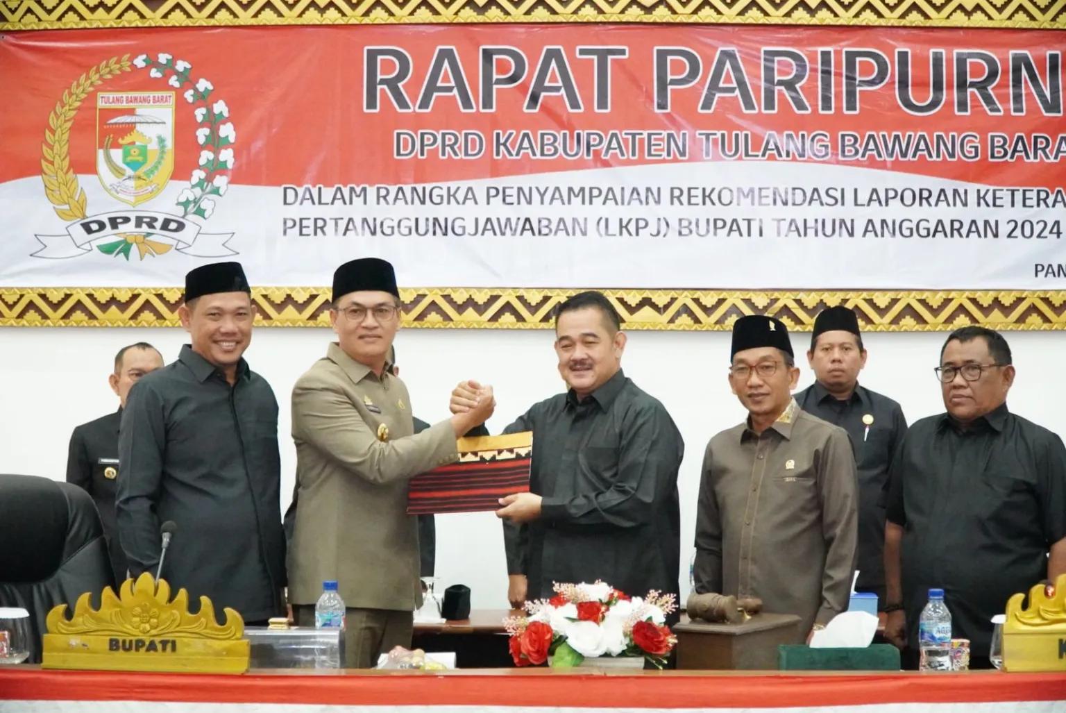 Tubaba – Pada Rapat Paripurna DPRD Dalam Penyampaian Rekomendasi Laporan Keterangan Pertanggung Jawaban (LKPJ) Tahun Anggaran 2024 yang diselengarakan diruang sidang DPRD pada Jum’at (25/04/2025).