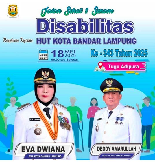 BANDAR LAMPUNG– Pemerintah Kota (Pemkot) Bandar Lampung akan menyelenggarakan kegiatan jalan sehat dan senam disabilitas dalam rangka memperingati HUT ke-343 Kota Bandar Lampung. Acara ini akan dipusatkan di Tugu Adipura pada Minggu, 18 Mei 2025.