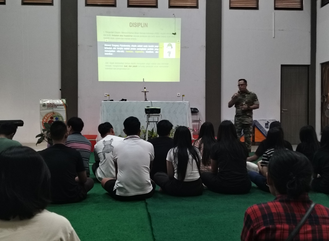 Dalam rangka membangun karakter disiplin generasi muda, Mayor Cke Yudi Nugroho (Danramil 410-04/TKT) memberikan pembinaan kedisiplinan kepada pemuda-pemudi Gereja Bethani di Gedung Matow Way Hurik, Kelurahan Tanjung Senang, Bandar Lampung. Kegiatan yang digelar pada pukul 14.00 WIB ini dihadiri sekitar 30 peserta dan berjalan tertib, aman, serta lancar.