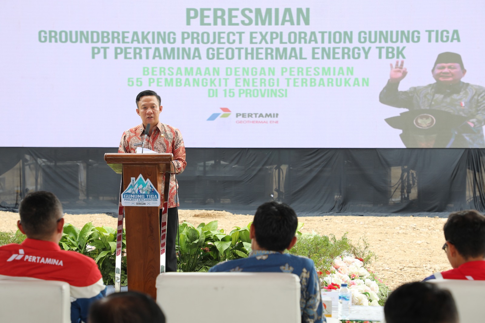 Presiden Prabowo Subianto meresmikan pembangunan dan pengoperasian proyek energi terbarukan Project Exploration Gunung Tiga, Pekon Tiga, Kecamatan Ulubelu, Kabupaten Tanggamus secara daring bersama 15 provinsi lainnya. Peresmian yang dilakukan Presiden dipusatkan di Bondowoso, Kamis (26/6/2025).