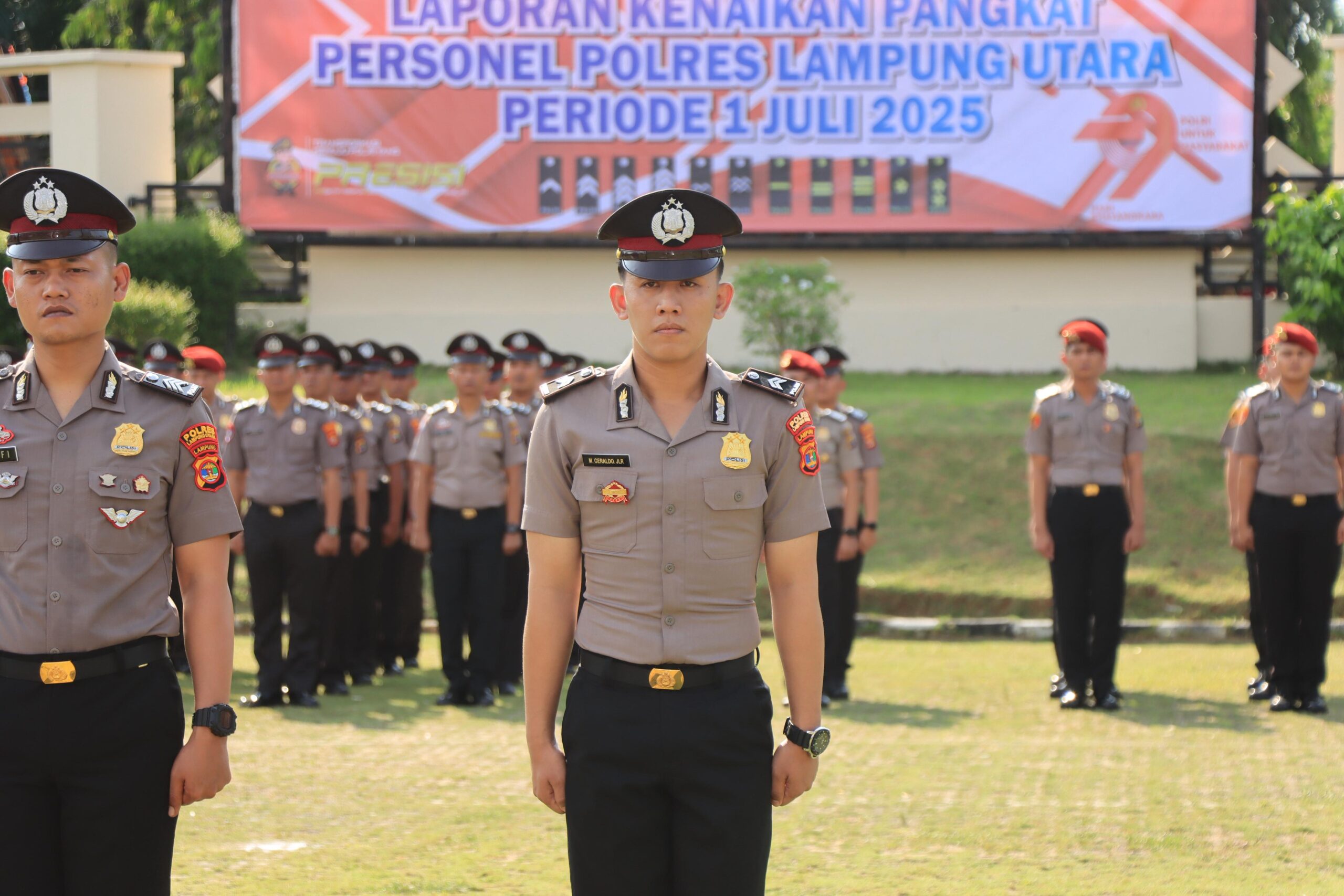 Adapun Personel Polres Lampung Utara yang melaksanakan kenaikan pangkat periode 1 Juli 2025 dari Aipda ke Aiptu 7 personel, Bripka ke Aipda 20 personel, Brigadir ke Bripka 3 personel, Briptu ke Brigadir 1 personel dan Bripda ke Briptu 7 personel.