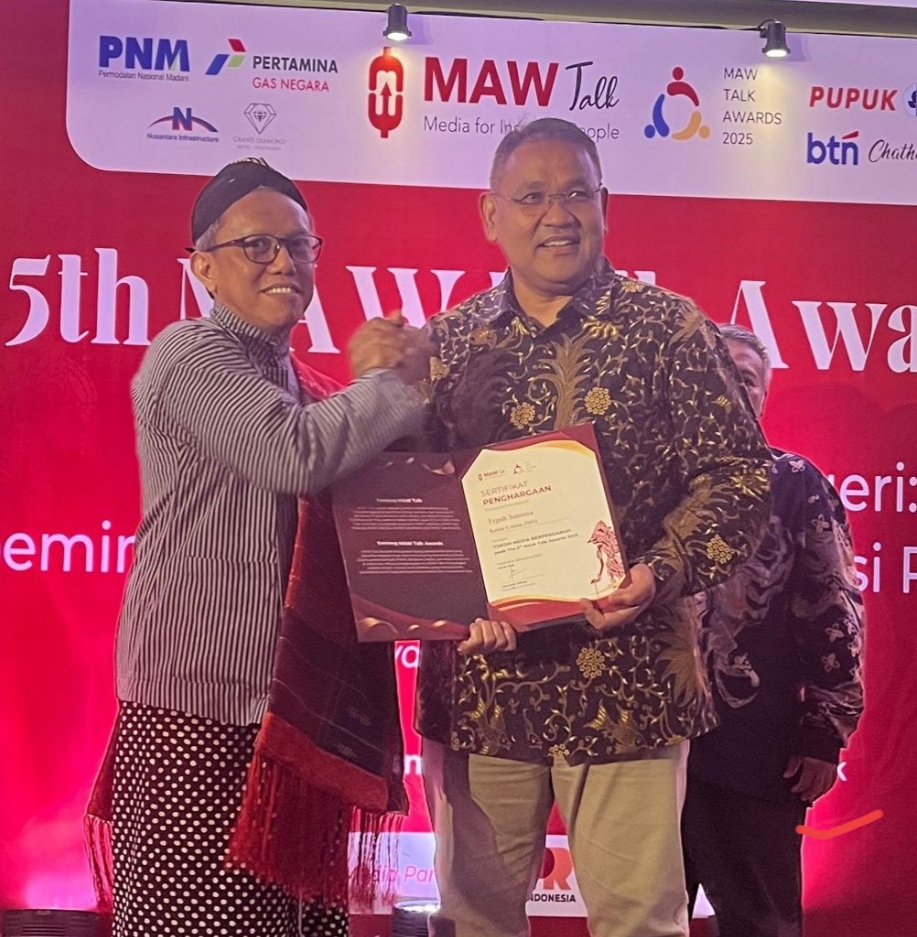 “Saya dedikasikan penghargaan ini untuk semua teman yang membesarkan Jaringan Media Siber Indonesia (JMSI),” ujar Teguh ketika memberikan sambutan singkat usai menerima piagam penghargaan MAW Talk Awards 2025.