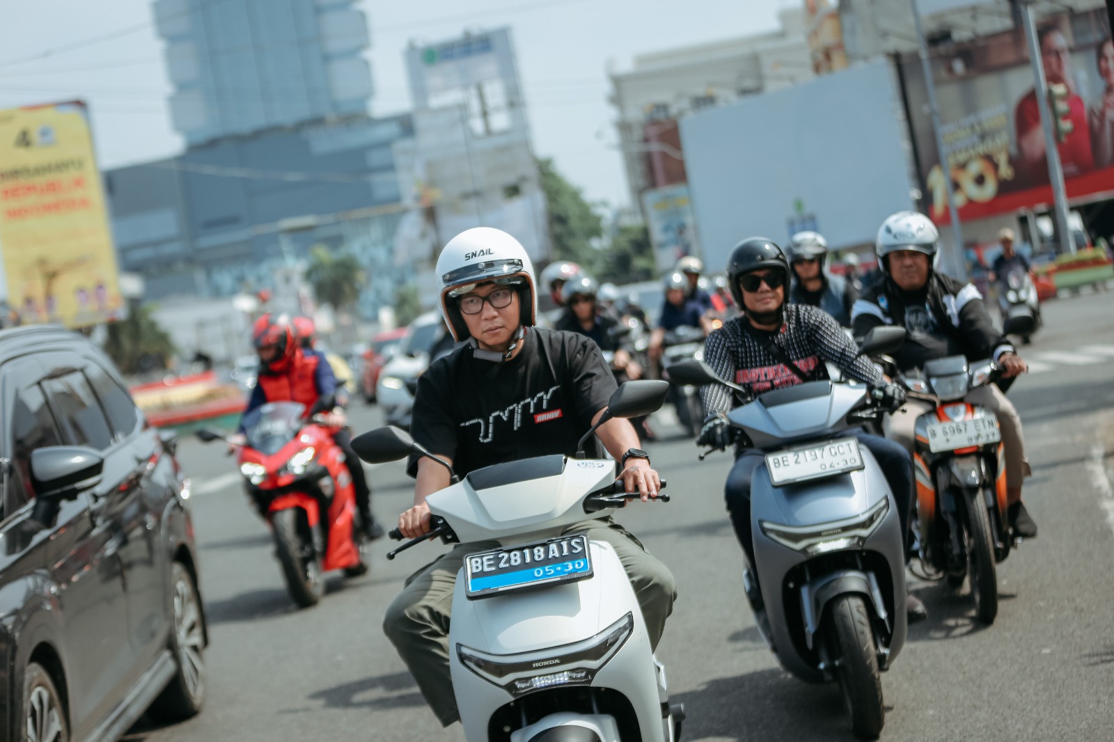 Selain menjadi ajang silaturahmi antar komunitas, kegiatan ini juga disertai aksi sosial berupa pembagian nasi kotak kepada pengemudi ojek online serta penggalangan dana sebagai bentuk kepedulian sosial.
