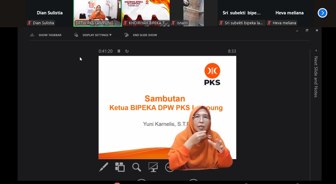 Bidang Perempuan dan Keluarga (BIPEKA) Partai Keadilan Sejahtera (PKS) Provinsi Lampung meneguhkan komitmennya untuk memperkuat ketahanan keluarga sebagai fondasi utama bangsa. Melalui Rapat Koordinasi Wilayah (Rakorwil) BIPEKA PKS Se-Lampung yang digelar secara daring pada Ahad (19/10), seluruh pengurus BIPEKA dari DPD PKS kabupaten/kota se-Lampung menyatukan langkah dalam mewujudkan family mainstreaming atau pengarusutamaan keluarga di seluruh program pelayanan dan pemberdayaan masyarakat, Minggu(19 Oktober 2025).