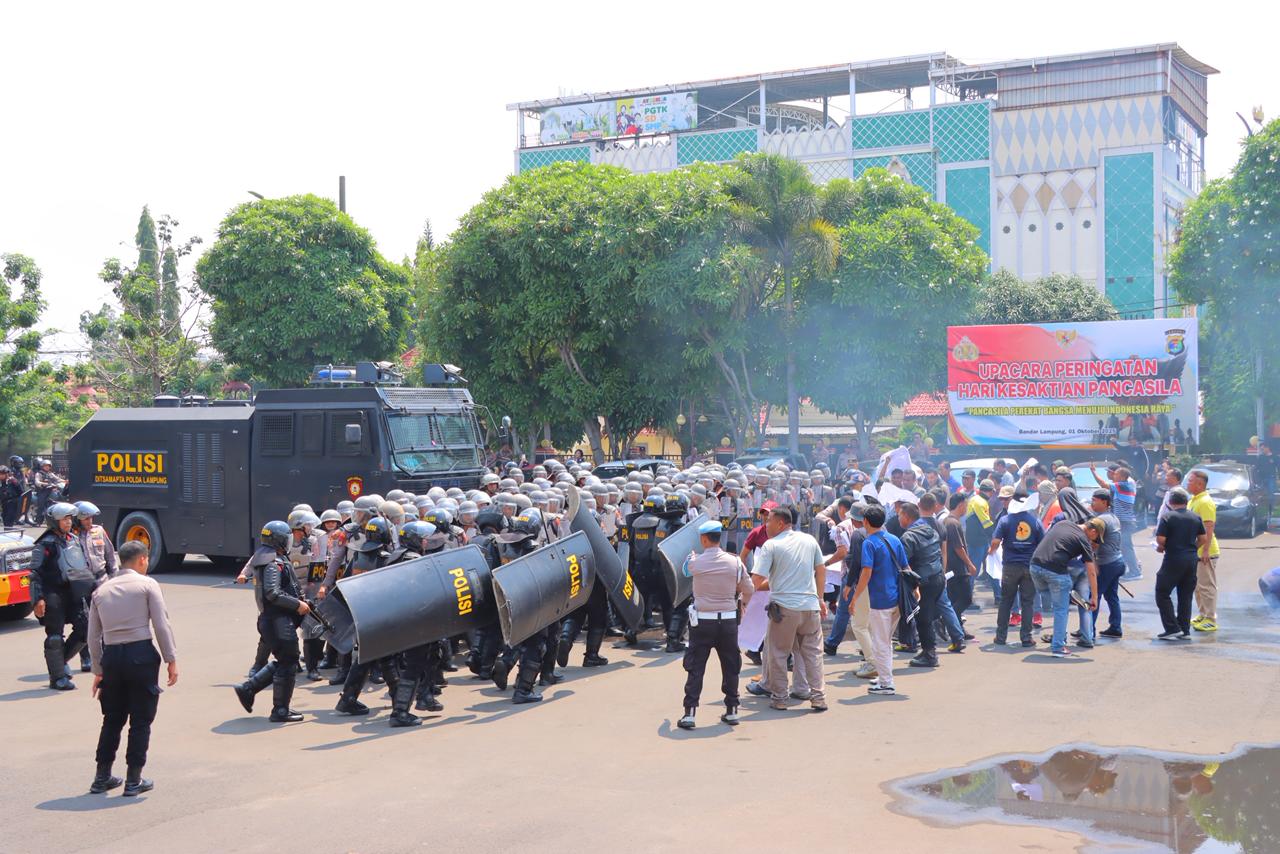 Kegiatan simulasi tersebut dilaksanakan di Lapangan Mapolresta Bandar Lampung, pada Jumat (17/10/2025), dengan melibatkan 363 personel gabungan yang terdiri dari personel Polresta Bandar Lampung, Dit Samapta Polda Lampung dan Sat Brimobda Lampung