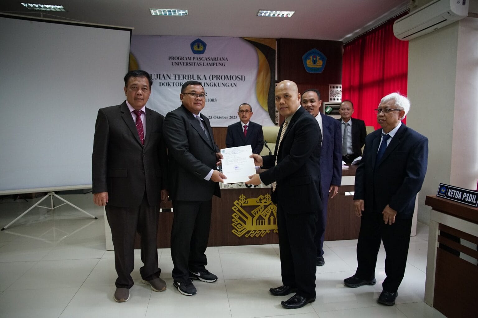 (Unila): Fakultas Pascasarjana Multidisiplin Universitas Lampung (Unila) kembali melahirkan seorang doktor baru melalui Program Studi Doktor Ilmu Lingkungan. Ujian terbuka promosi doktor atas nama Yosep dilaksanakan pada Kamis, 23 Oktober 2025, bertempat di Ruang Seminar Doktor Ilmu Lingkungan, Fakultas Pascasarjana Multidisiplin Unila.