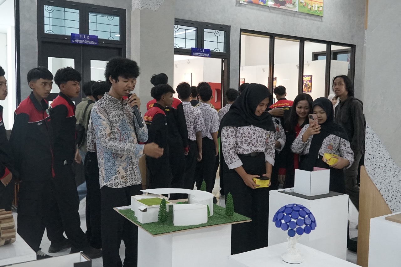 Karya mahasiswa dapat dinikmati pengunjung mulai pukul 08.00 WIB hingga pukul 16.00 WIB ini merupakan bagian aksi mahasiswa dalam mengekspresikan pembelajaran selama di kelas. Karya yang ditampilkan milik mahasiswa angkatan 2024 Prodi DKV dan Prodi Desain Interior.