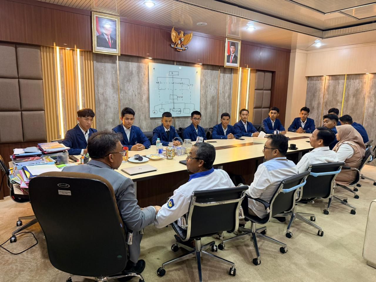 Seremoni pelepasan berlangsung di ruang kerja Wakil Rektor Bidang Perencanaan, Kerja Sama, dan Sistem Informasi (PKSI) Prof. Dr. Ayi Ahadiat, S.E., M.B.A., mewakili Rektor Unila.