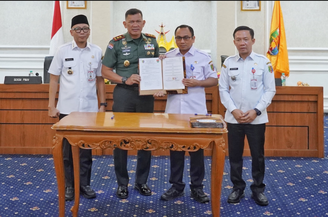 Penandatanganan dilakulan oleh Plt. Badan Pengelolaan Keuangan dan Aset Daerah (BPKAD) Provinsi Lampung, Nurul Fajri, Pangdam XXI/Radin Inten Mayjen Kristomei Sianturi, Danrem 043/Garuda Hitam Brigjen Haryantana dan perwakilan dari unsur TNI dan Polri.