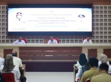 Bandar Lampung– Pemerintah Kota Bandar Lampung menggelar rapat persiapan pelaksanaan Operasi Pasar Murah Tahun 2026 menjelang bulan suci Ramadhan 1447 Hijriah, Rabu (4/2/2026). Rapat tersebut berlangsung di Aula Semergou Pemerintah Kota Bandar Lampung.