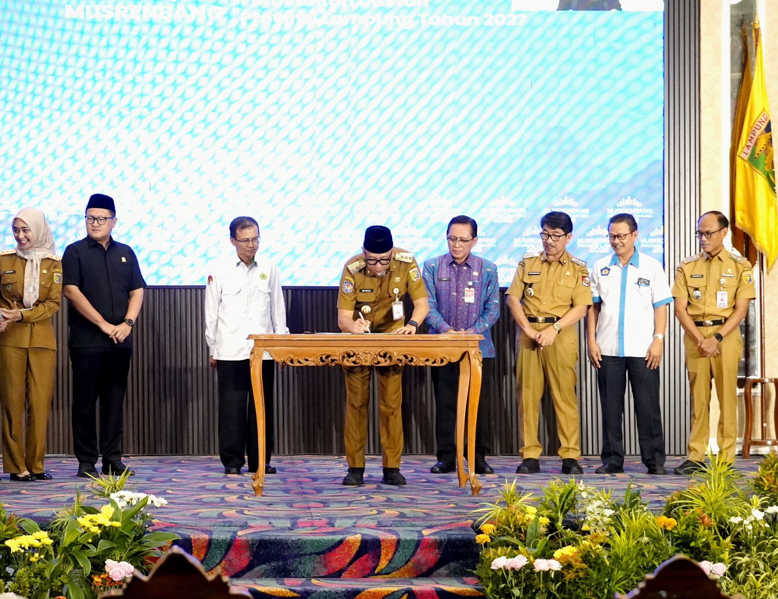 Gubernur Lampung, Rahmat Mirzani Djausal membuka Musyawarah Perencanaan Pembangunan (Musrenbang) Provinsi Lampung Tahun 2026 dalam rangka penyusunan RKPD Tahun 2027 di Balai Keratun, Kantor Gubernur Lampung, Senin (13/4/2026).