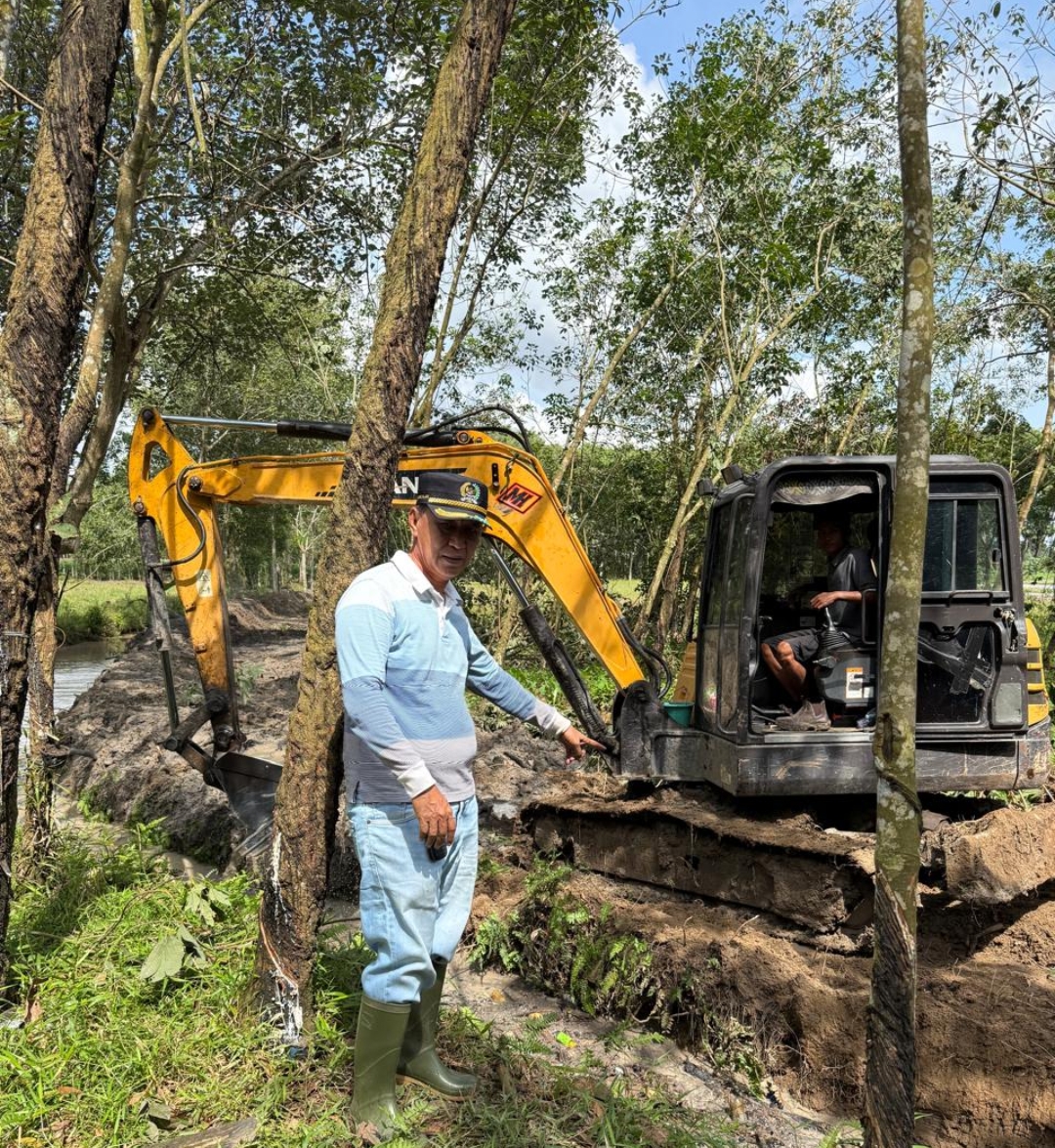 Anggota DPRD Kabupaten Tulang Bawang Barat, Edi Anwar, S.HI., M.H., CRP, rela merogoh kocek pribadi demi merealisasikan janji yang disampaikan saat kegiatan reses dengan melakukan normalisasi sungai sepanjang kurang lebih 800 meter di RK 4, Tiyuh Murni Jaya, Sabtu (18/4/2026).
