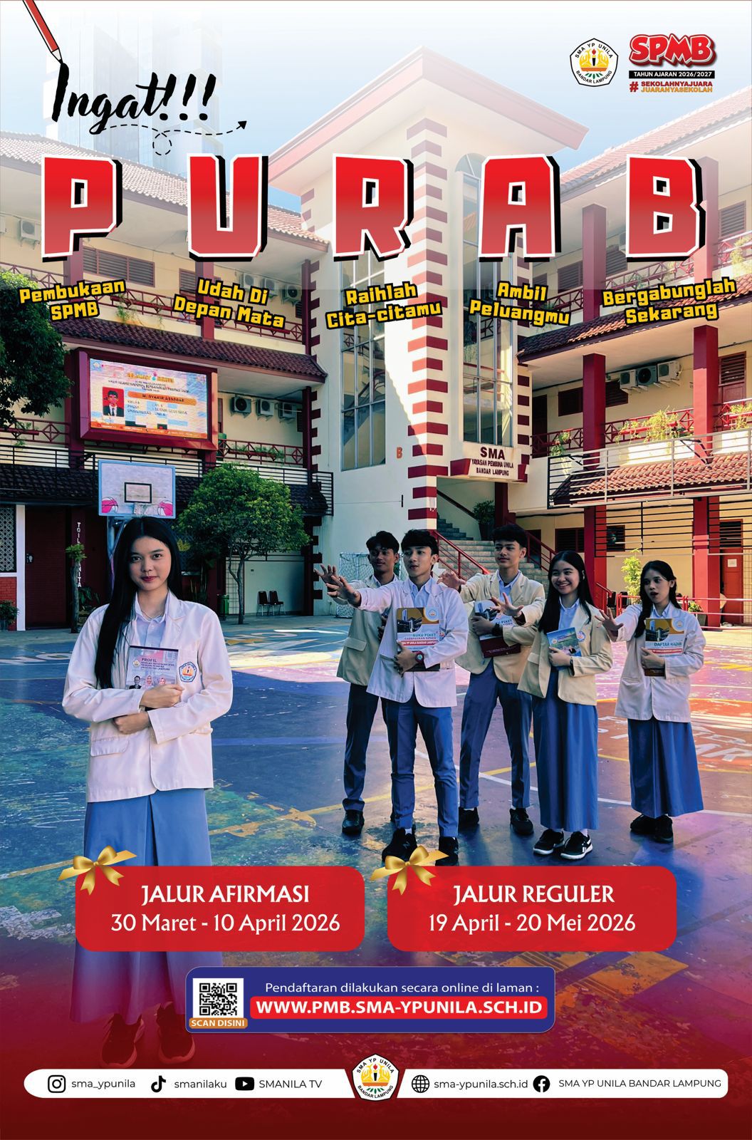 Jalur Afirmasi telah dibuka pada 30 Maret hingga 10 April 2026, sementara Jalur Reguler akan berlangsung mulai 19 April hingga 20 Mei 2026. Calon peserta didik dapat melakukan pendaftaran secara online melalui laman resmi sekolah di www.pmb.sma-ypunila.sch.id�.