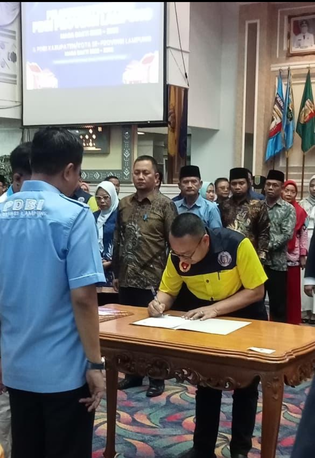 Prosesi pengukuhan berlangsung di Balai Keratun, Kantor Gubernur Lampung, pada Kamis (23/4/2026). Kegiatan tersebut menjadi bagian dari rangkaian pelantikan kepengurusan PDBI mulai dari tingkat provinsi hingga kabupaten/kota se-Provinsi Lampung.