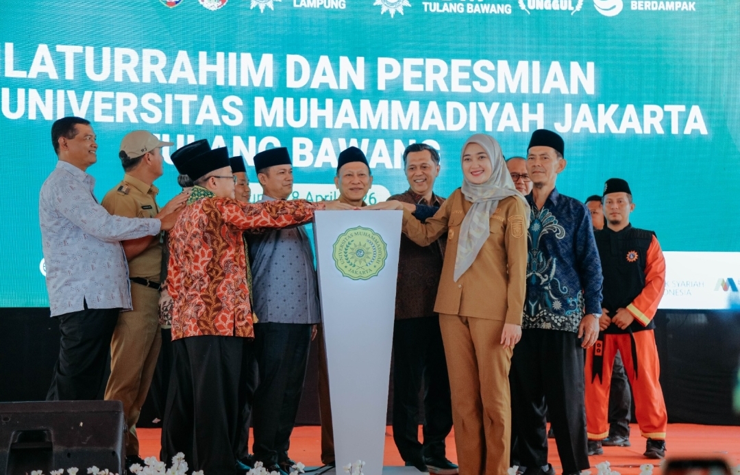 Wakil Gubernur Lampung Jihan Nurlela mendampingi Menteri Pendidikan Dasar dan Menengah (Mendikdasmen) Abdul Mu’ti meresmikan kampus Universitas Muhammadiyah Jakarta (UMJ) di Kabupaten Tulang Bawang, Selasa (28/4/2026).
